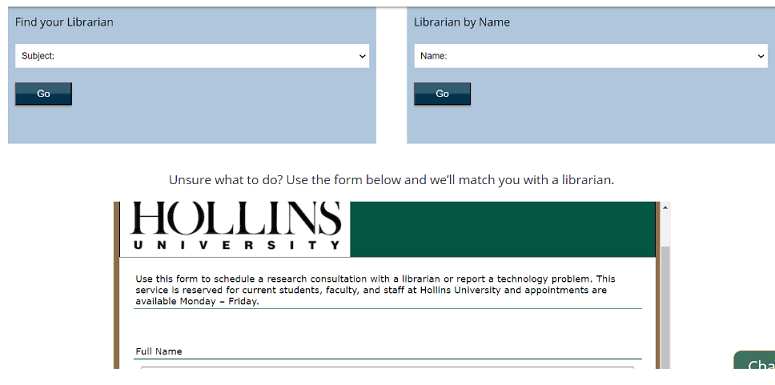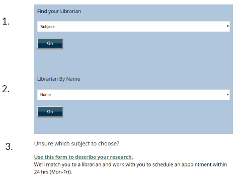 Recommendation: Make the drop down boxes to find librarians for specific subjects larger and stand out more on the page, so that students can more easily find the subject they need help with and get redirected to the proper librarian’s Calendly page faster.
